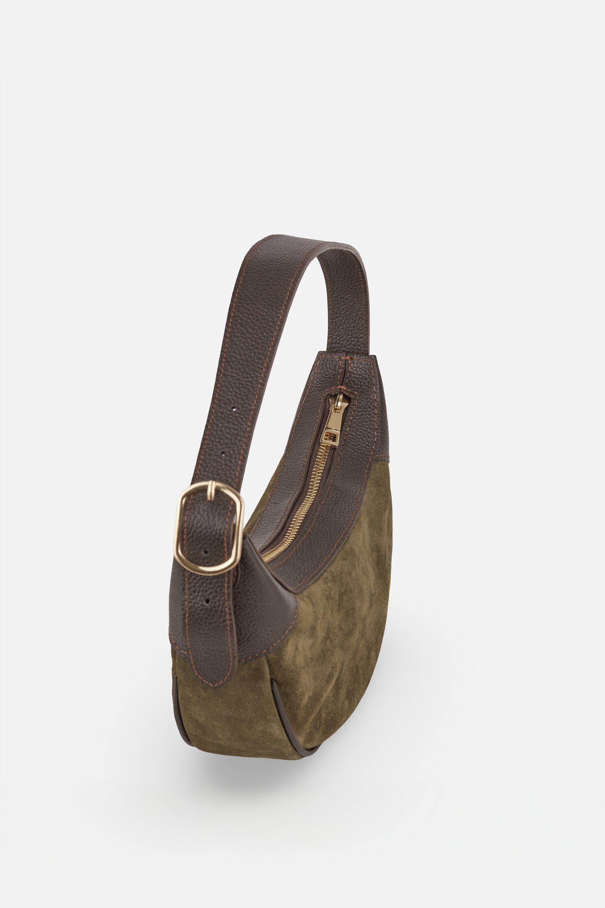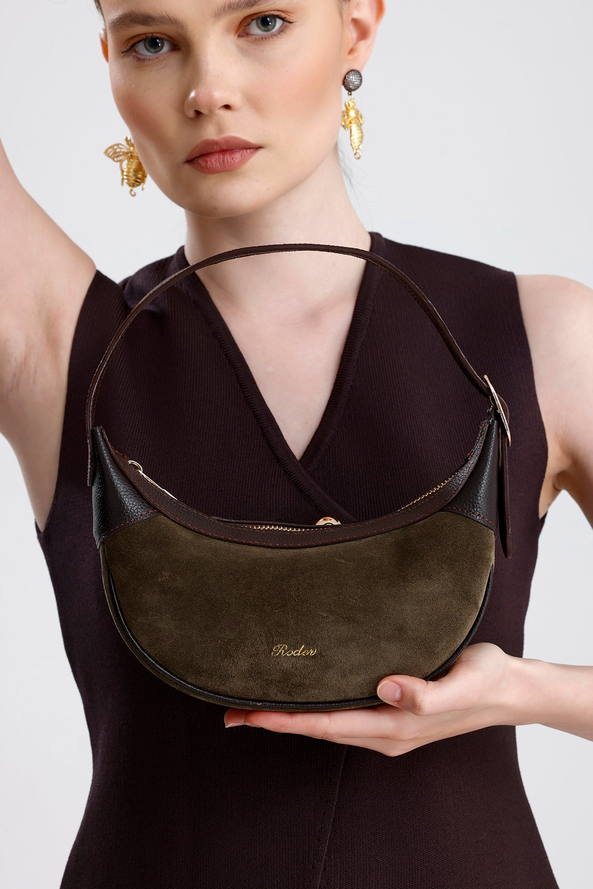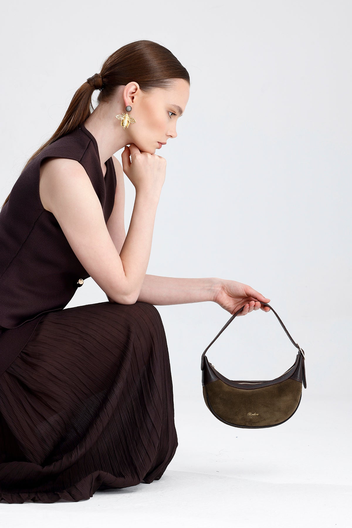 This bag is crafted from a refined combination of suede and floater leather. To preserve its elegance, avoid contact with water, oils, and direct sunlight. Clean the suede with a soft suede brush, and gently wipe the floater leather with a dry cloth. Store in its dust bag when not in use to maintain shape and texture.