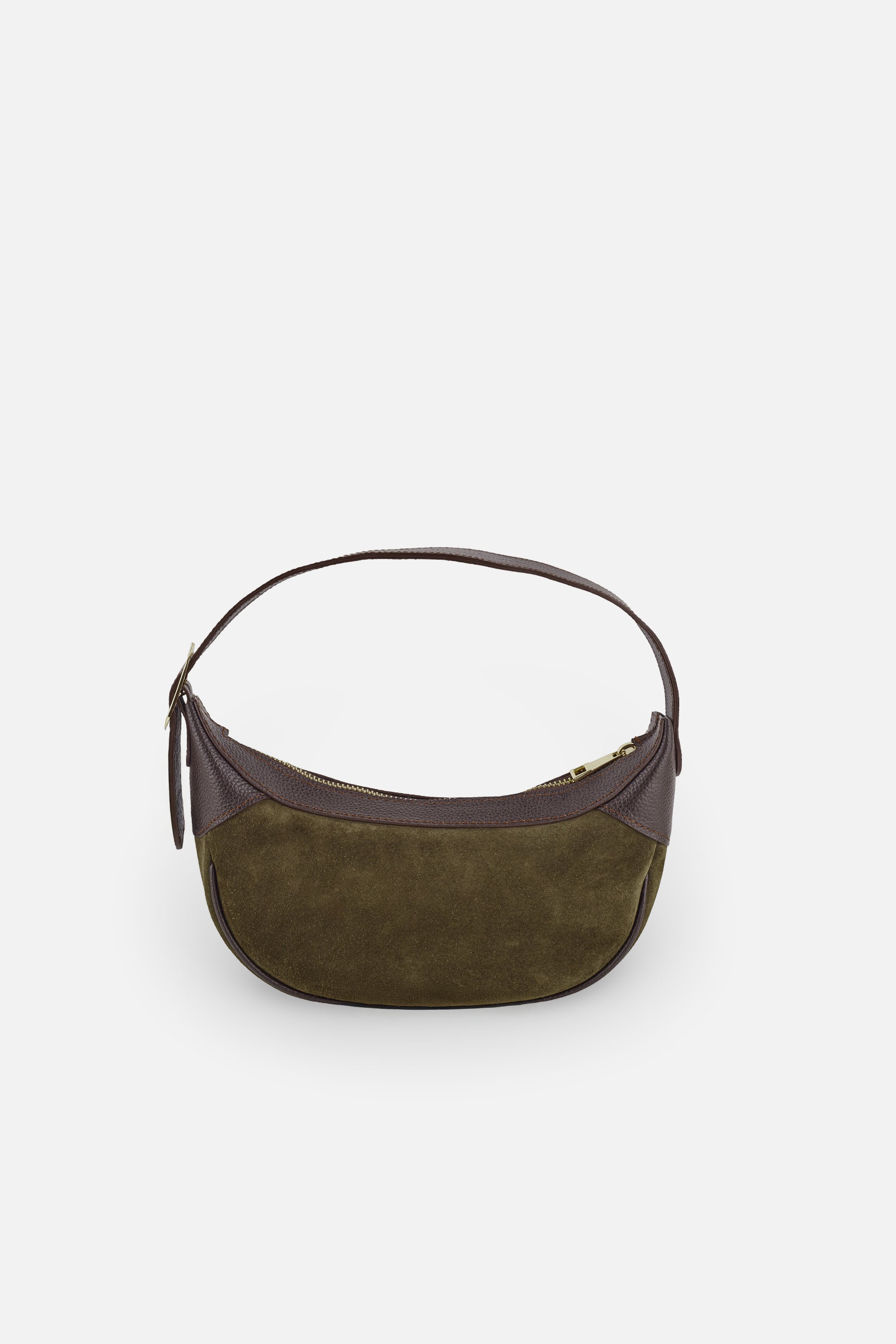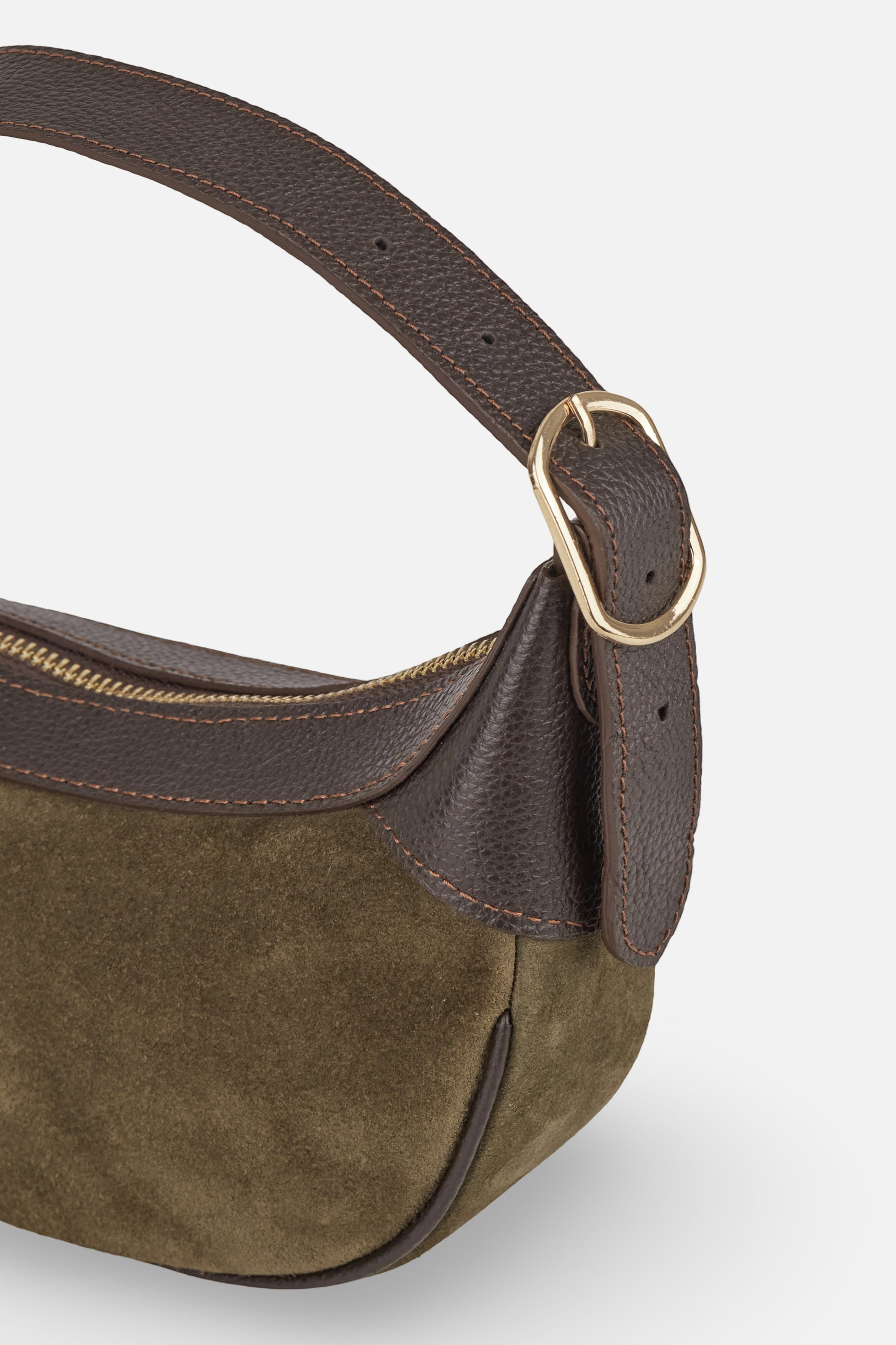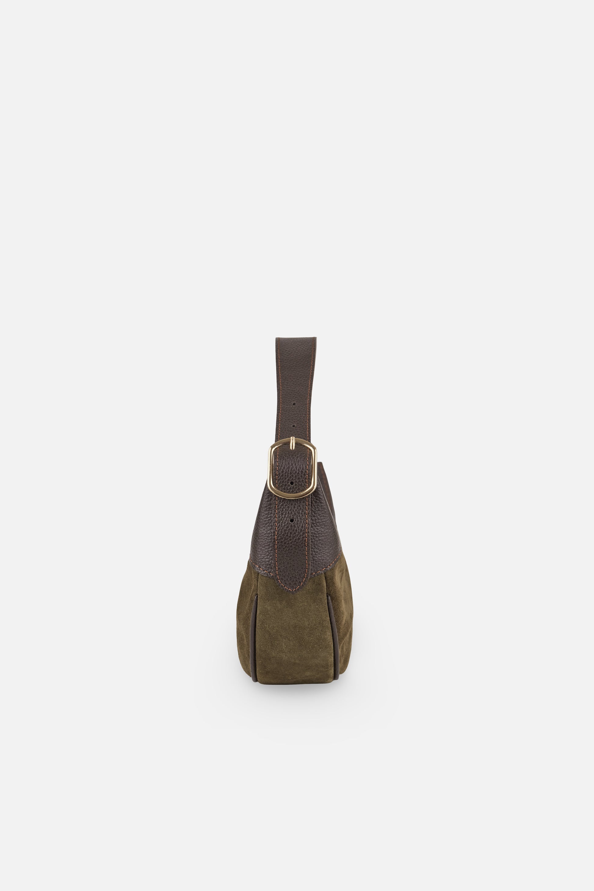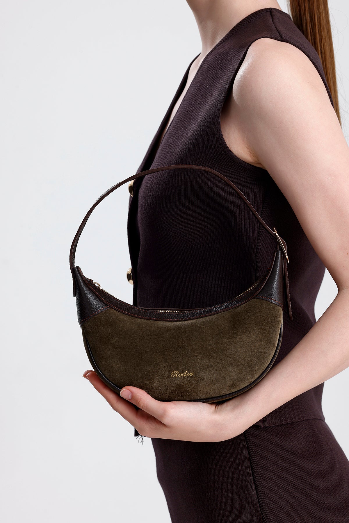 This bag is crafted from a refined combination of suede and floater leather. To preserve its elegance, avoid contact with water, oils, and direct sunlight. Clean the suede with a soft suede brush, and gently wipe the floater leather with a dry cloth. Store in its dust bag when not in use to maintain shape and texture.